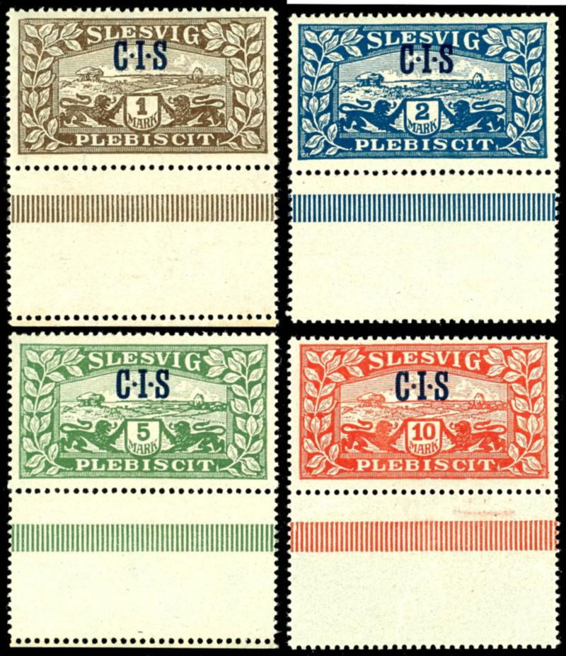 15 Bani to 40 Bani without additional box printing, complete set uniform from upper margin, 15 pfennigs and 30 pfennigs with cylinder upper margin, 20 pfennigs plate upper margin, perfectly mint never hinged, photo expertize Wasels BPP "genuine and immaculate", Michel 900.- - scarce set from upper m