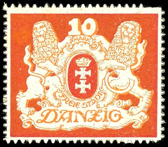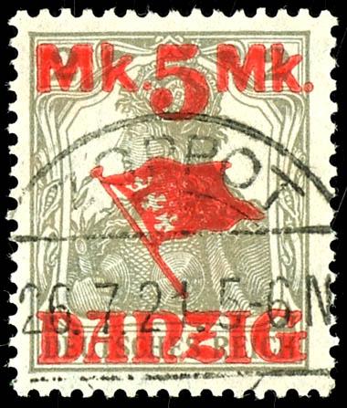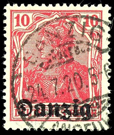 10 pfennigs with overprint "Gdansk", used, perfect, expertized Infla Berlin, Michel 150.- (2a) 10 Pfennig mit Aufdruck "Danzig", gestempelt, einwandfrei, geprüft Infla Berlin, Mi. 150.-