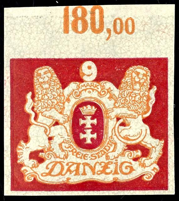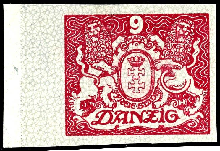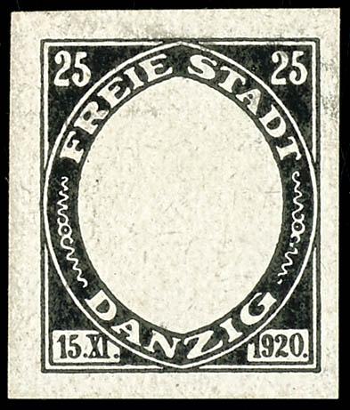 25 pfennigs "Danziger cog", imperforated black phase print only of the frame, sound ungummed, expertized Kniep BPP, photo expertize Gunnar Gruber BPP. "genuine and in perfect quality. " (55PH) Certificate