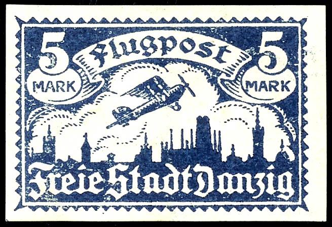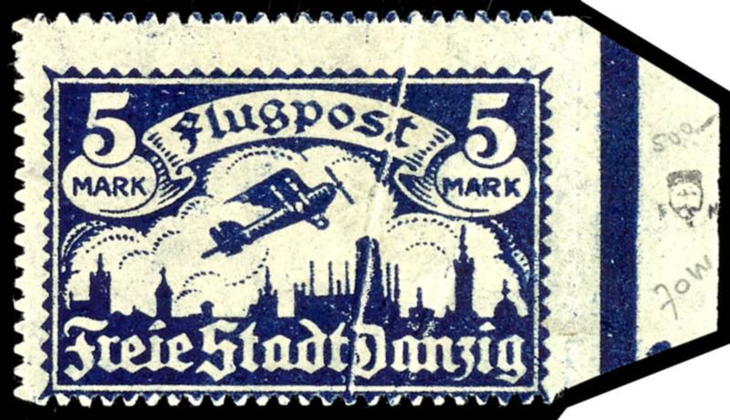 5 Mark flight, watermark sideways, unused with right margin of sheet, photo expertize Gunnar Gruber BPP "the traces of paint on the back and The Persuaders! creases are manufactured. the stamp is genuine and in perfect quality", Michel 1.800.- (70Y) (page)