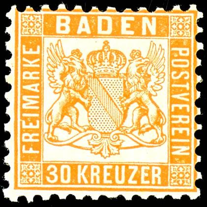 30 Kreuzer lebhaftgelborange, tadellos postfrisches Luxusstück, unsigniert, Fotoattestkopie Flemming BPP (für ehemalige Einheit), Mi. 600.-30 kreuzer bright yellow orange, impeccable mint never hinged outstanding quality, unsigned, photo copy of a certificate Flemming BPP (for former unit), Miche