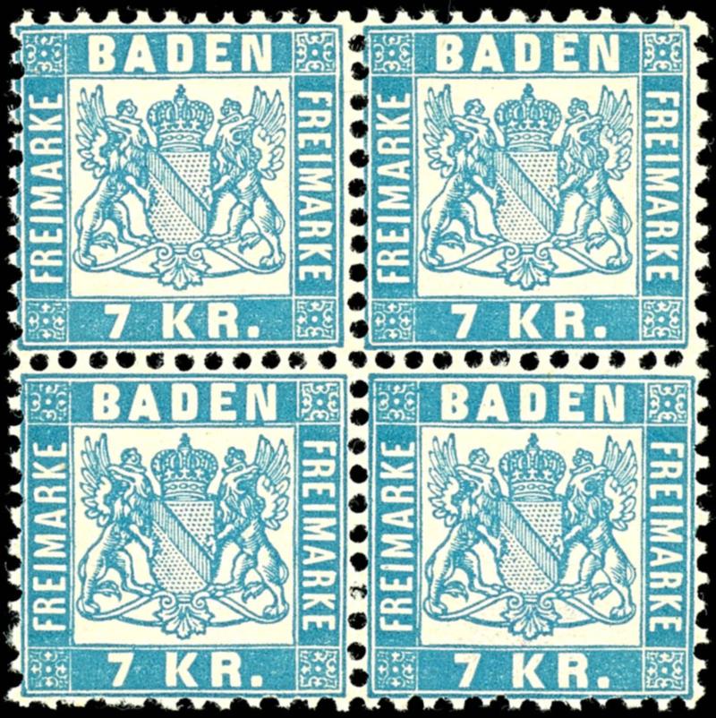 7 Kreuzer hellblau, farbfrischer und vollzähniger Viererblock, tadellos postfrisch, gepr. Seeger BPP, Mi. 550.-7 kreuzer pale blue, having bright colours and complete perforeted block of four, impeccable mint never hinged, expertized Seeger BPP, Michel 550.- (25b(4)) (page)