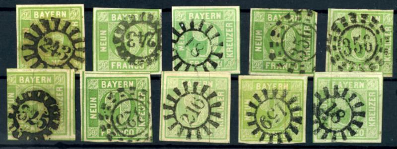 9 Kreuzer grün, 10 mal tadellos gestempelt, in verschiedenen Farbnuancen9 kreuzer green, 10 time neat cancelled, in different colour shades (5(10)) (Image 1)