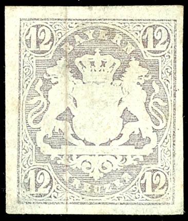12 Kreuzer hellbraunviolett ungebraucht ohne Gummi und mit einer dünnen Stelle, erhöht gepr. Brettl BPP, Mi. 420.- für *12 kreuzer pale brown violet unused without gum and with a thin place, higher signed Brettl BPP, Michel 420.- for * (18) (page)