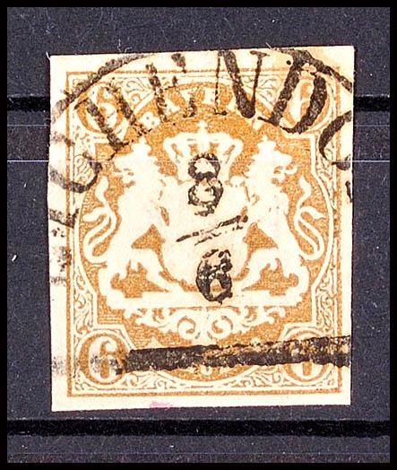 6 Kr. ockerbraun, allseits breitrandig, ideal klarer zentrischer HKS (E)ICHENDO(RF)6 Kr. Ochre-brown, large margins all around, perfect clear centered semicircle cancel (E) ICHENDO (RF) (20) (Image 1)