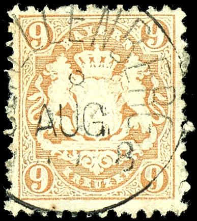 9 Kreuzer braun, WZ. enge Rauten, farbfrisches und vollzähniges Kabinettstück, entwertet mit Einkreisstempel "Schellenberg", tadellose Erhaltung, Fotobefund Peter Sem BPP (2022): "einwandfrei erhalten.", Mi. 600.-9 kreuzer brown, watermark. Close lozenges, having bright colours and perfect perfor