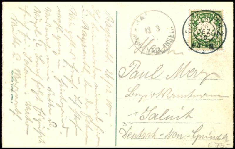 5 Pfennig "Staatswappen" auf Postkarte mit Entwertung "BAYREUTH" nach Jaluit mit Ankunftsstempel "JALUIT", tadellos5 penny \"national coat of arms\" on postcard with cancellation \"BAYREUTH\" to Jaluit with arrival postmark \"JALUIT\", impeccable (61) (page)