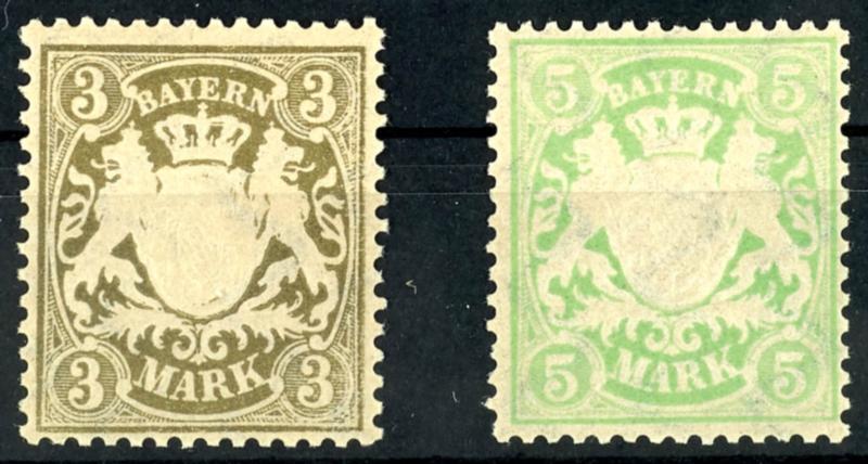 3 und 5 Mark auf Papier x tadellos postfrisch, je rückseitig kleines "x" mit Bleistift, ansonsten unsigniert, Mi. 120.-3 and 5 Mark on paper x impeccable mint never hinged, always reverse small \"x\" with pencil, otherwise unsigned, Michel 120.- (69/70x) (page)