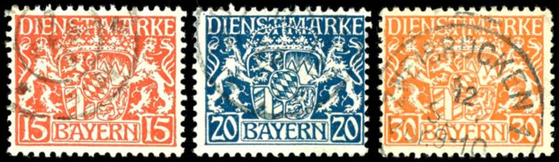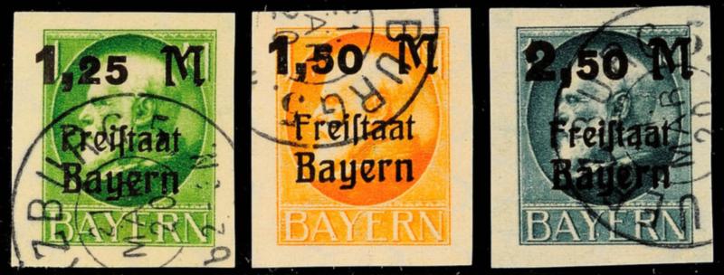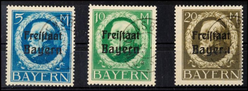 5, 10 und 20 Mk., Freistaat auf Ludwig, je gestempelt, gepr. Infla, Mi. 142,-5, 10 and 20 Mk., Free State on Ludwig, always used, expertized Infla, Michel 142,- (168/70A) (Image 1)