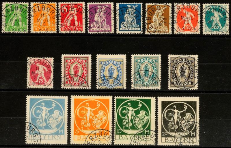 5 Pfg bis 20 Mk Abschiedsserie, ohne 2 1/2 Mk Steindruck, 17 farbfrische und sauber gestempelte Werte, tadellos, jede Marke gepr. Infla (Dr. Helbig), Mi. 170.-5 Pfg to 20 Mk farewell series, without 2 1/2 Mk lithography, 17 having bright colours and neat cancelled values, impeccable, each stamp e