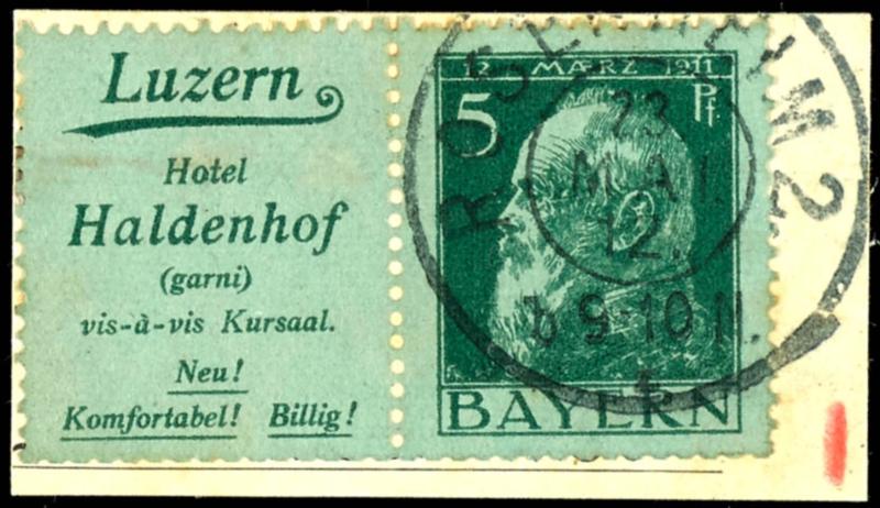 Reklame 16 + 5 Pfg Luitpold, waagerechter Zusammendruck, tadellos gestempelt auf Briefstück, gepr. Dr. Helbig BPP, Mi. 280.-Advertisement 16+5 Pfg Luitpold, horizontal se-tenant, neat cancelled on piece, expertized Dr. Helbig BPP, Michel 280.- (W1.16) (page)