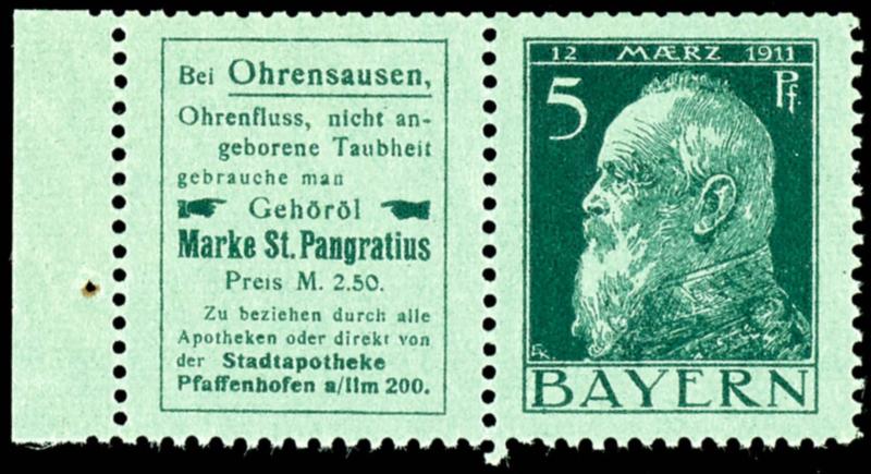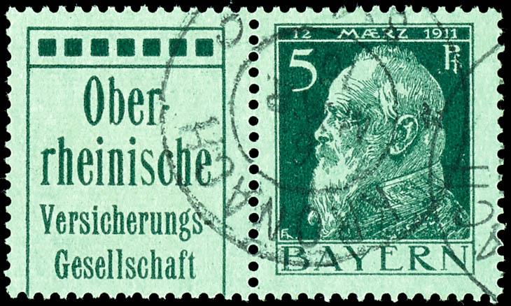 Reklame 50 + 5 Pfg Luitpold, waagerechter Zusammendruck, tadellos gestempelt, gepr. Helbig BPP, Mi. 180.-Advertisement 50+5 Pfg Luitpold, horizontal se-tenant, neat cancelled, expertized Helbig BPP, Michel 180.- (W1.51) (page)