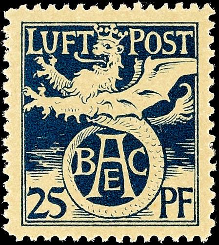 25 Pf. Flugpostmarke tadellos postfrisch, sehr gut gezähnt und noch völlig unsigniert! Mi. 400.-25 Pf. Airmail stamp impeccable mint never hinged, very well perforated and still entirely unsigned! Michel 400.- (FI) (page)