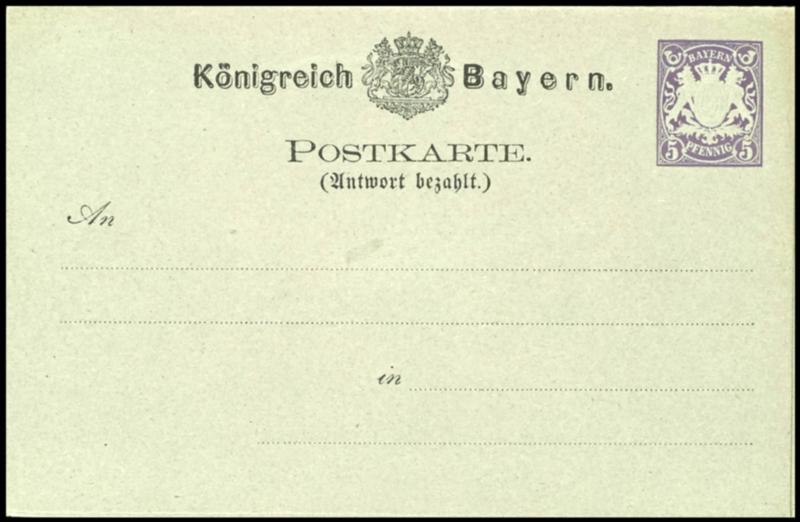 5/5 Pfg. violett, Doppelkarte, Type I, ungebraucht, selten, Mi. 900.-5 / 5 Pfg. Violet, double card, type I, unused, rare, Michel 900.- (P16I) (Image 1)