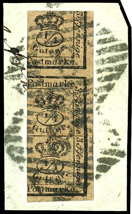 3/4 Groschen, vollrandiges und farbfrisches Kabinettstück, entwertet mit Nummernstempel "8" (Braunschweig) auf Briefstück, Fotobefund Lange BPP: "echt und einwandfrei"3 / 4 Groschen, having full margins and having bright colours extremely fine copy, tied by numeral cancellation \"8\" (Brunswick)
