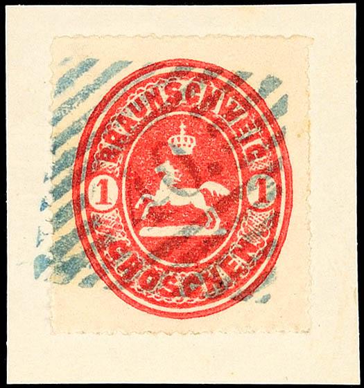 3 Silbergroschen karmin auf weiß, voll- bis überrandiges und farbfrisches Kabinettstück, klar und zentrisch entwertet mit Nummernstempel "8." - Braunschweig auf Briefstück, Fotobefund Lange BPP: "einwandfrei", Mi. 350.-3 silver penny carmine on white, full- to having huge margins and having brigh