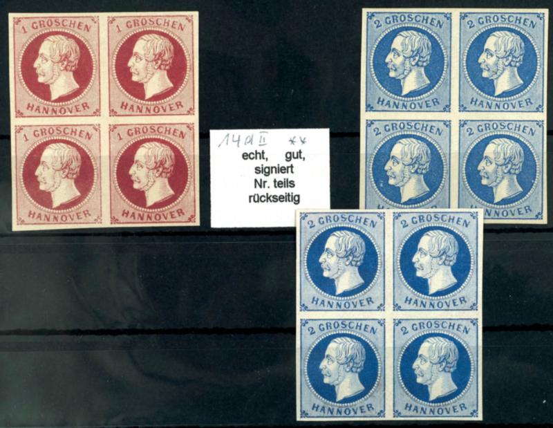 Einheiten "König Georg V.", Mi.-Nr. 14dII und 15a und 15b jeweils im Viererblock, tadellos postfrisch, 14dII und 15a gepr. Berger, Mi. 1.616.-, ex Sammlung HöffenMultiples \"King George V. \", Michel number 14 d II and 15 an and 15 b in each case in the block of four, impeccable mint never hinged