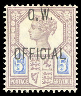 (O47) 1901-02 O.W. Official, 5p lilac & ultramarine, h.r., fresh and fine stamp, signed Herbert Bloch, $4,500