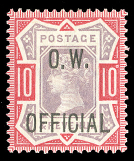 (O48) 1901-02 O.W. Official, 10p carmine rose & lilac, l.h., well centered, v.f., pencil notations on back, with 1979 Philatelic Foundation certificate, $8,250