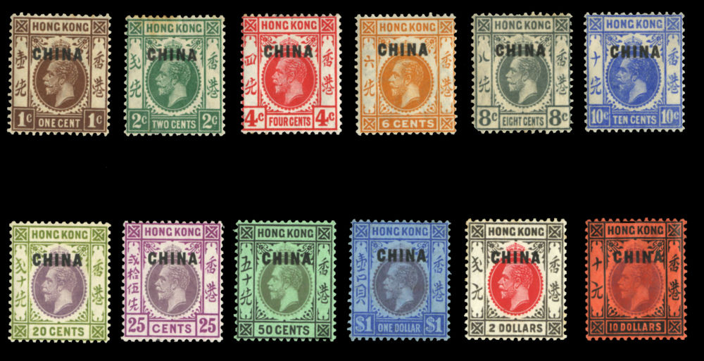 1917 overprinted "China", 1c-10c, 20c, 25c, 50c, $1, $2 and $10, tweleve different, 8c rounded lower left corner, otherwise fine-v.f., $1,254