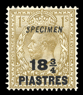 (SG 47S) 1921 18 3/4pi on 1sh bister brown, overprinted "Specimen" (Samuel Type GB 23), v.f., with 2001 BPA certificate