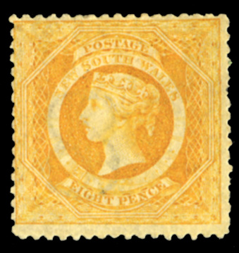 (41) 1860 8p bright yellow, h.r., irregular perforations at right, still a fine stamp, with 2003 APS certificate (SG 167c,£450) $575