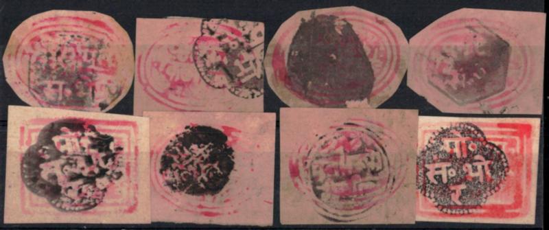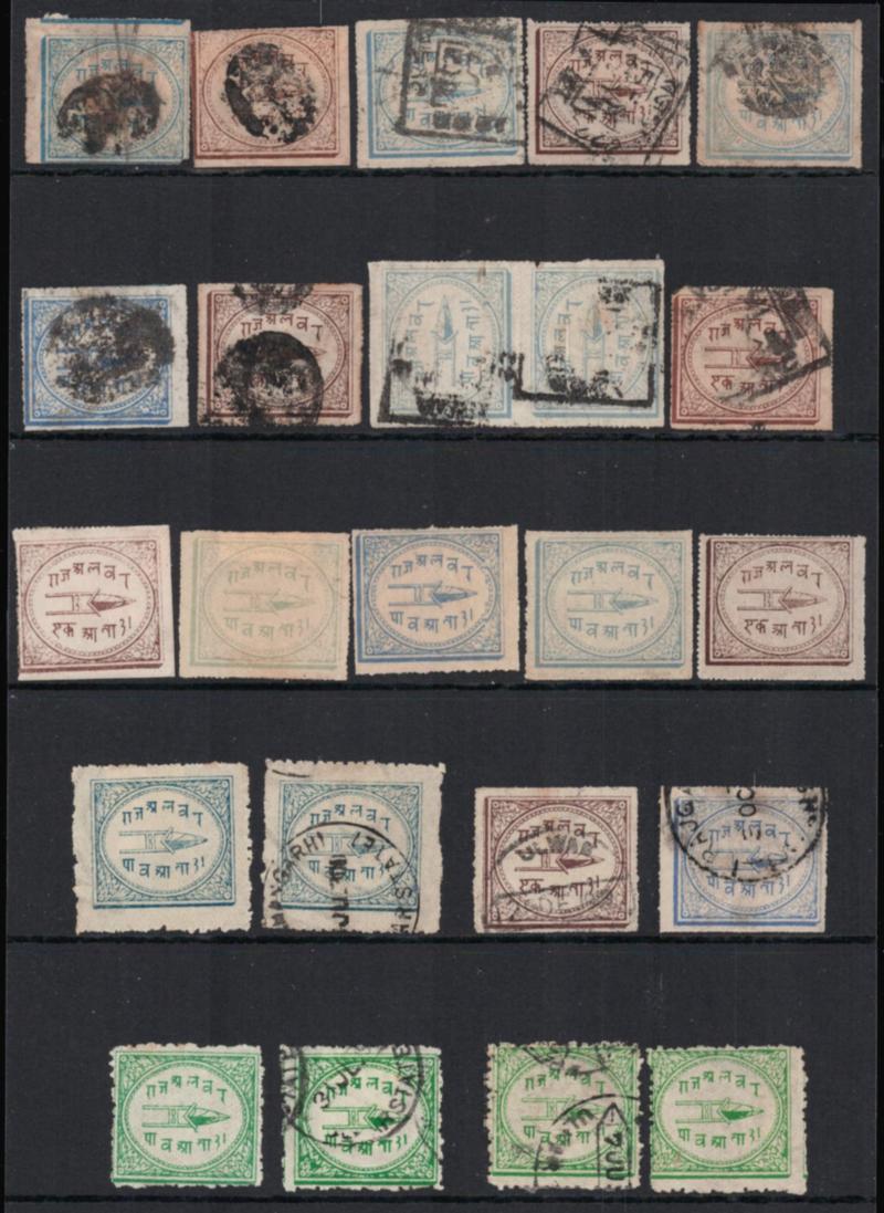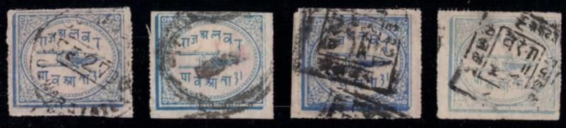 1879 ½ and 1 anna used with different types of obliterations, noted Nasrapur, Velhe, Pirangut, Bhor US$0