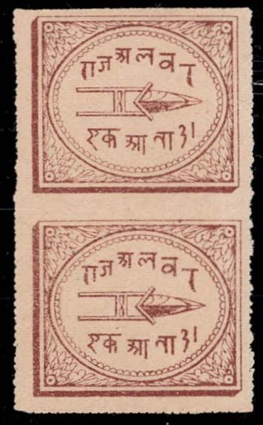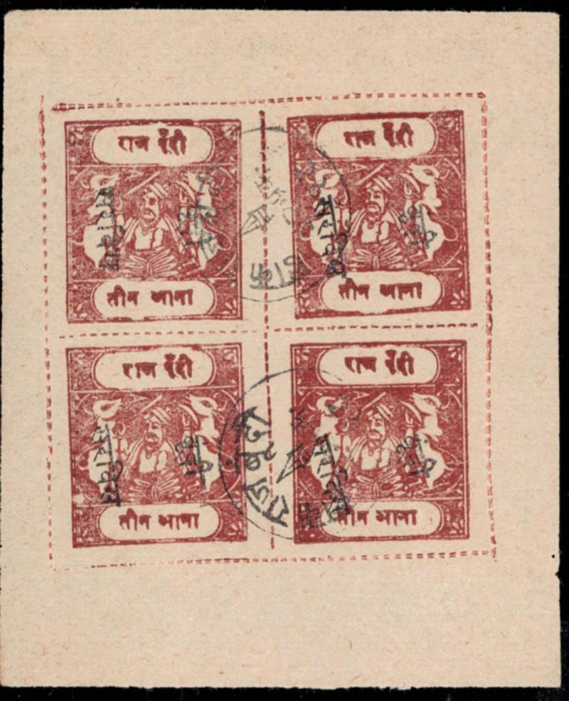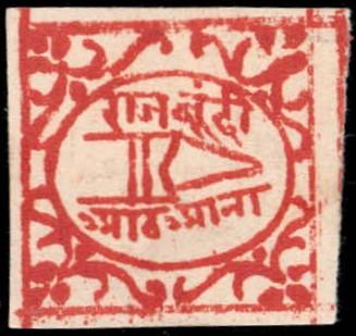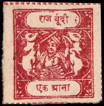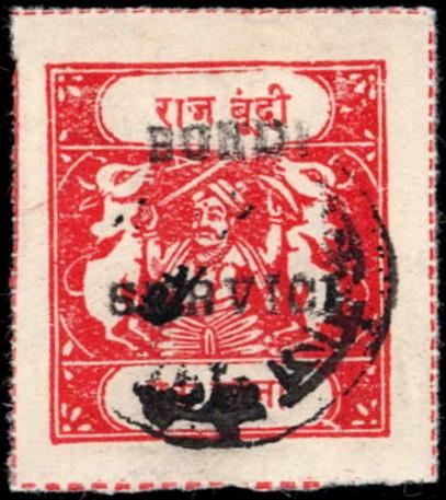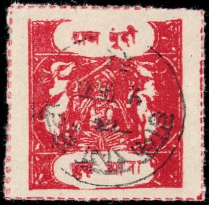 1930-32 1a carmine-red with a superb strike of "DAK RAJ BUNDI / 5 FEB / 31" cds in Devanagri US$0