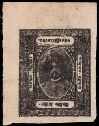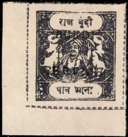 1915-41 ¼a indigo on thin wove paper with inscriptions SG Type F overprinted Bundi Service in Devanagri in black ink. Unused without gum as issued. US$0