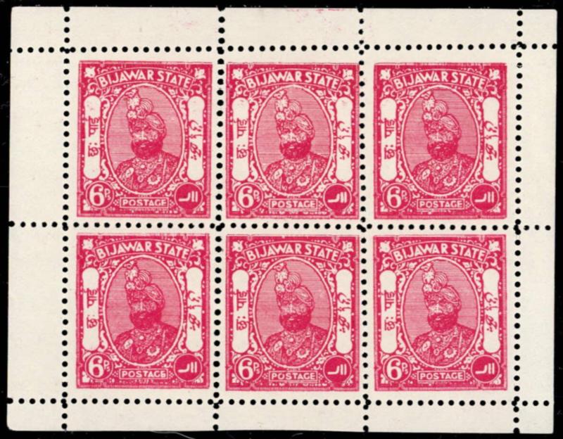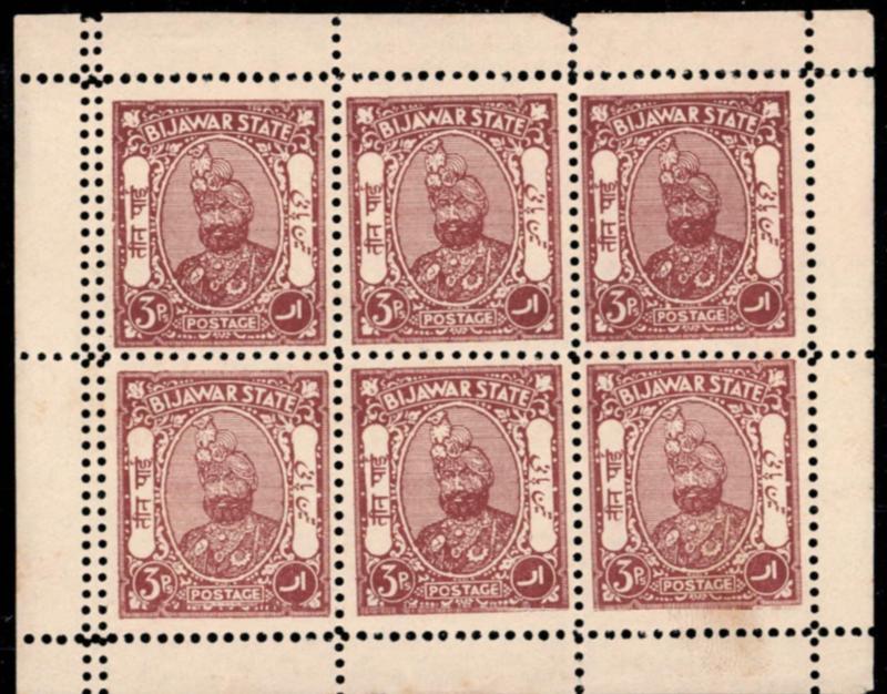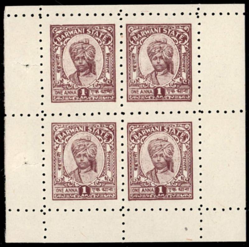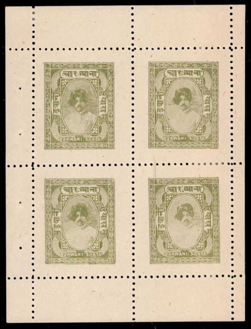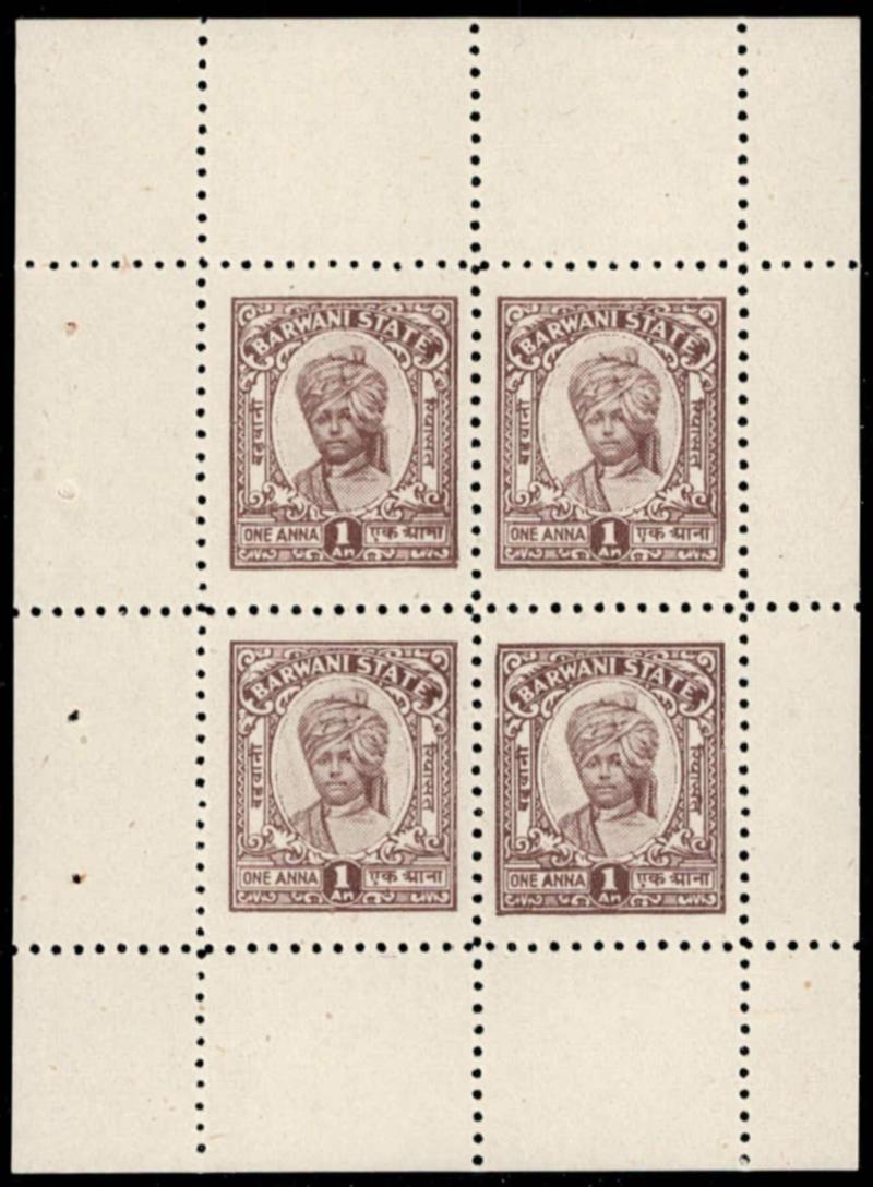 1915-41 3a chestnut complete sheet of four overprinted Bundi Service in Devanagri sideways. Stamps cancelled to order and very scarce as such. US$0