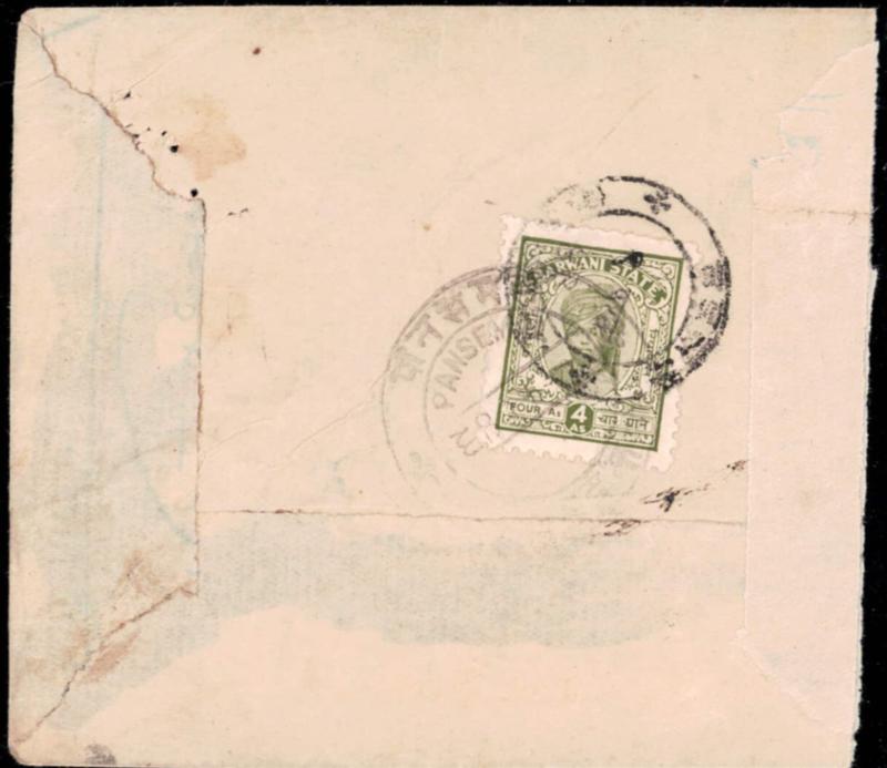 1945-47 4a olive-green used on local registered cover from Pansemal to Barwani US$0