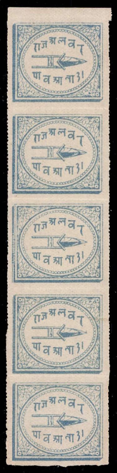 1877 ¼a grey-blue vertical strip of 5 US$0