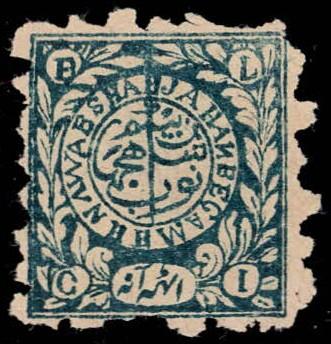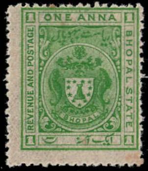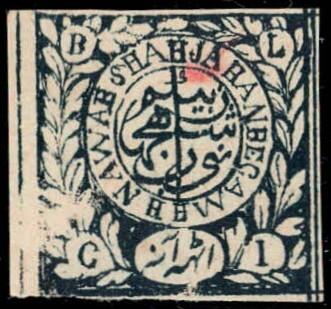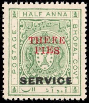 1903 8a green-black overprinted with the initial of the new Begum in red. Unused without gum as issued. US$0