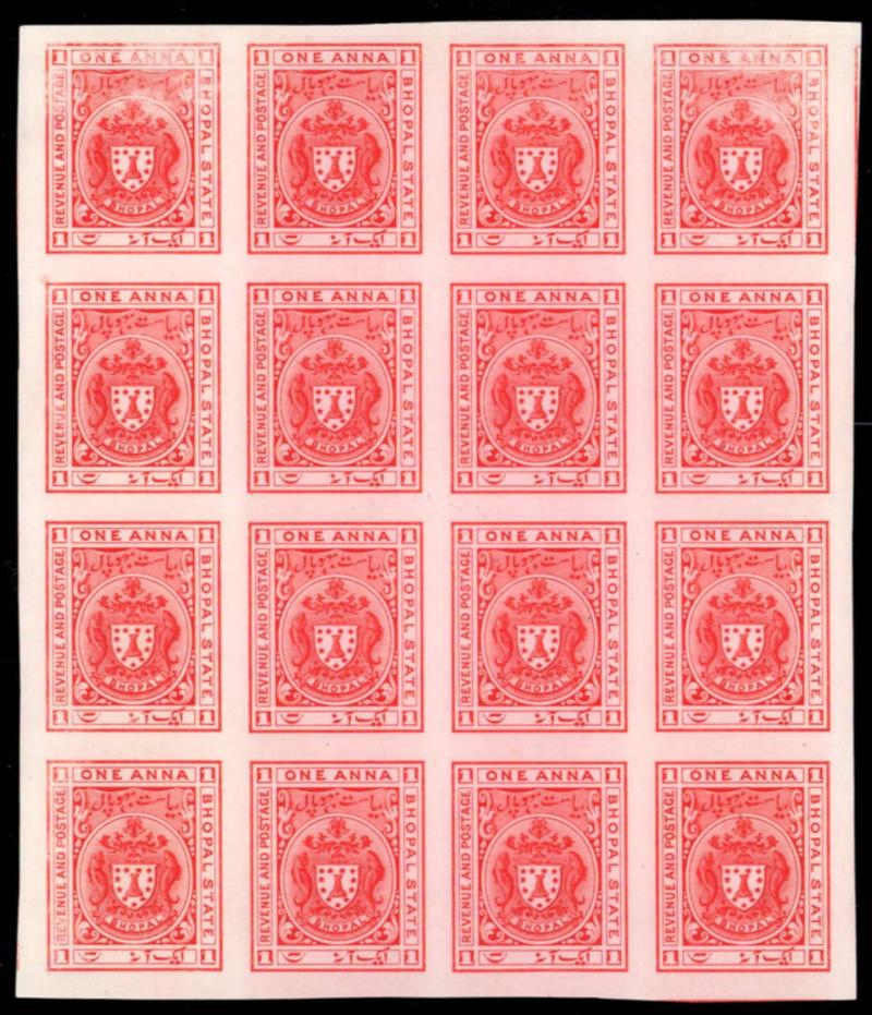 1908 1a orange Imperf Plate Proof in orange, block of 16. 2025 ISES certificate US$0