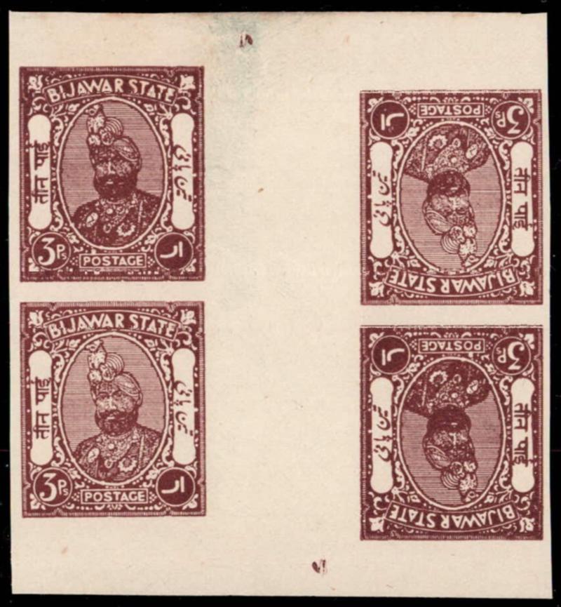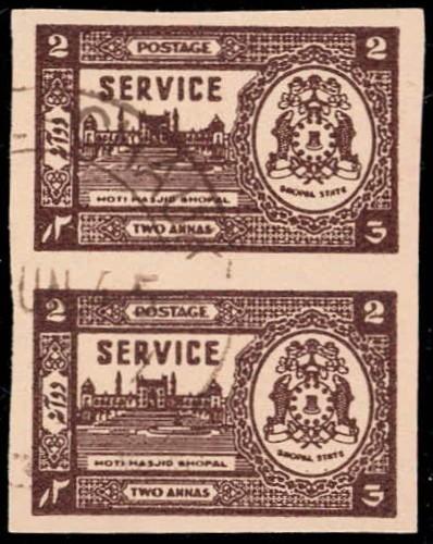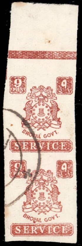 1945 9 pies chestnut marginal vertical pair with error, stamps imperforate US$0