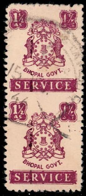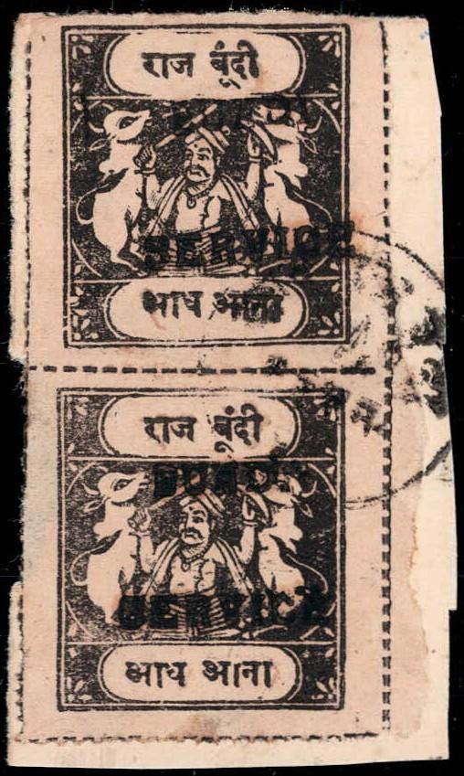 1915-41 ½a black vertical pair on piece overprinted BUNDI SERVICE in small English letters. Used Official sacred cows stamps are rare and unpriced in SG. US$0