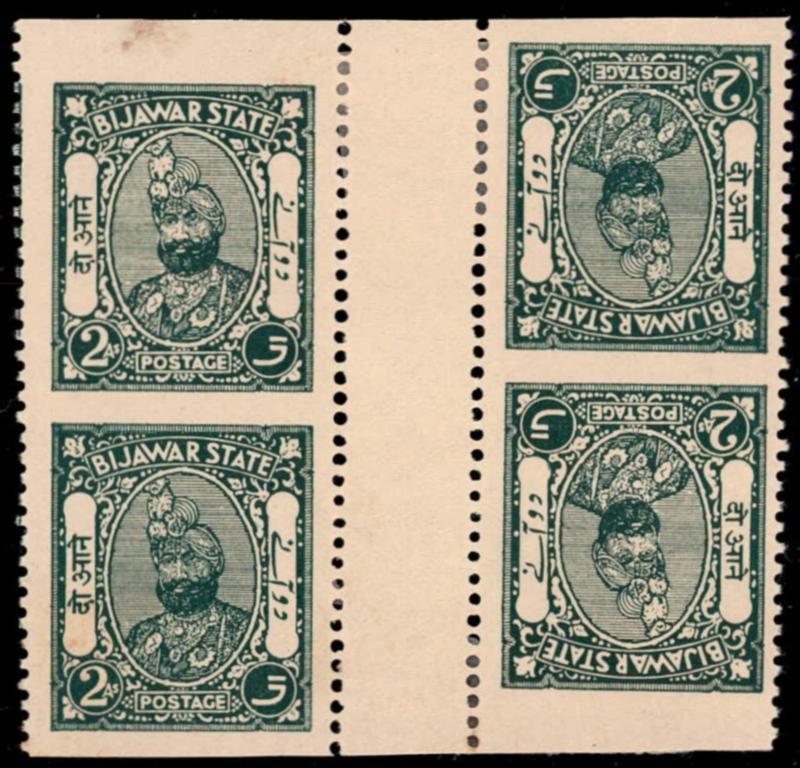 1935-36 2a deep green gutter block of four with stamps imperf horizontally with stamps in tete-beche pair with Jal Cooper's initials in pencil on reverse. US$0