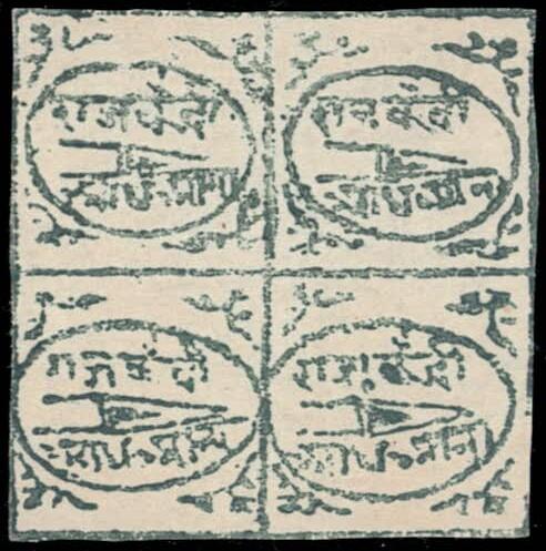 1894 ½a slate-grey stamps joined together with no space between them, block of 4. Unused without gum as issued US$0