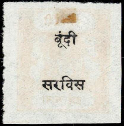 1915-41 2½a chrome-yellow with error, overprinted BUNDI SERVICE in Devanagri letters on reverse. Unused without gum as issued. US$0