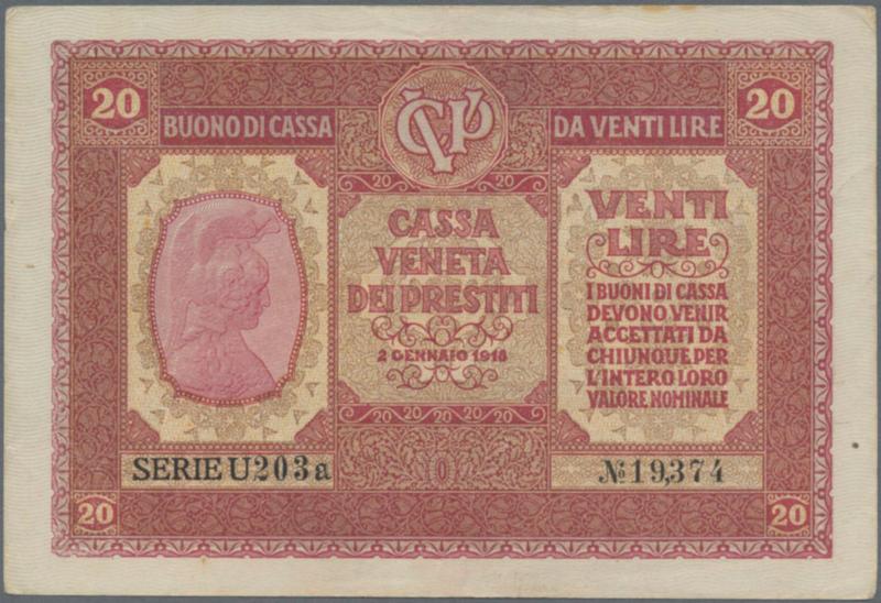 Biglietto di Stato and Republica Italiana, very nice lot with 19 banknotes, comprising 10 Lire D.1888 (P.20i, VF/VF+), 5 Lire D.1904 (P.23d, VF), 1 Lire D.1935 (P.26, XF+/aUNC), 2 Lire D.1944 (P.30a, UNC), 3x 5 Lire D.1944 (P.31b,c, XF, aUNC), 1 Lire D.1914 (P.