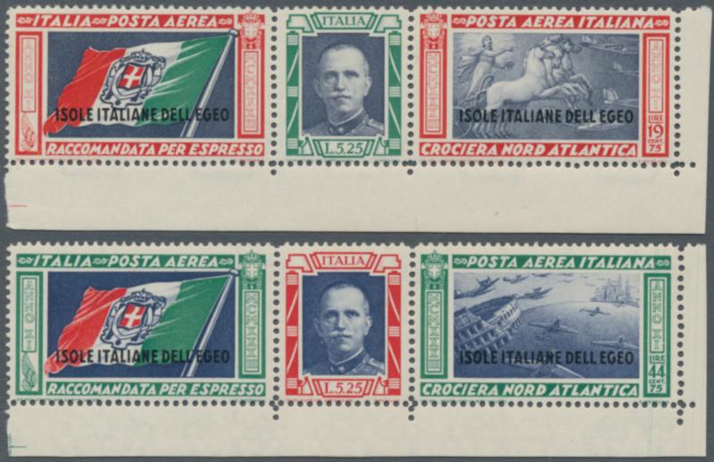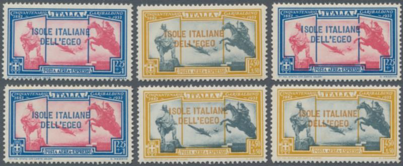 1932, Egeo Islands. Three sets of two stamps, MNH. Sassone # 19/20 € 900.- Lot 3 sets € 2.700