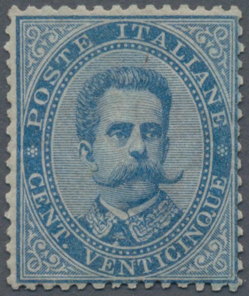 1879, 25 C blue King Umberto mint never hinged, the stamp is well perforated and overall in perfect condition, signed and photo-certificate Oliva (Sassone 2.500.-) ÷ 1879, 25 C blau König Umberto postfrisch, die Marke ist gut gezähnt und insgesamt in tadelloser