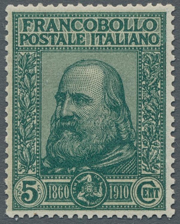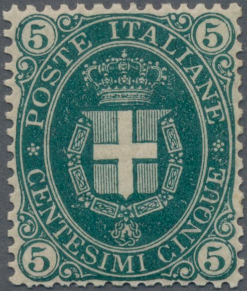 1889, 5 C dark green 'coat of arms', mint never hinged with original gum, VF centering (Sassone: discreta centratura). VF/XF condition. Sassone CV 2.750.-€