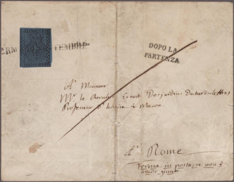 1850/1890: Safe Compact Album mit Briefhüllen (teils mit Inhalt) des Kirchenstaates, der Toskana, Siziliens und der Italienischen Königreiches. Das Album beginnt mit drei markenlosen Briefen an die Gebrüder Rothschild in Paris, der Markenteil beginnt mit einem
