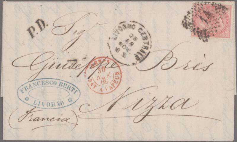 1840/1860, over 30 stampless letters from abroad mostly addressed to Livorno and Genova. Including three letters from Constantinople, 8-10 letters from Great Britain with a great range of French transit cancel, some French a