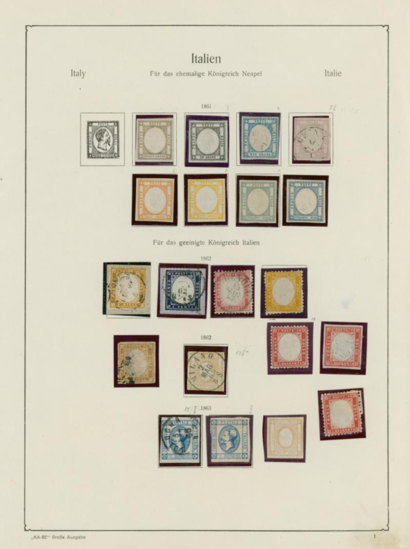 1861/1973, mostly mind, later years mint never hinged, collection on KA-BE preprinted pages in folder, starting with the issue for the Naples provinces and the perforated IV'th Sardinian issue, definitives and commemoratives nearly complete, some gaps in the "B