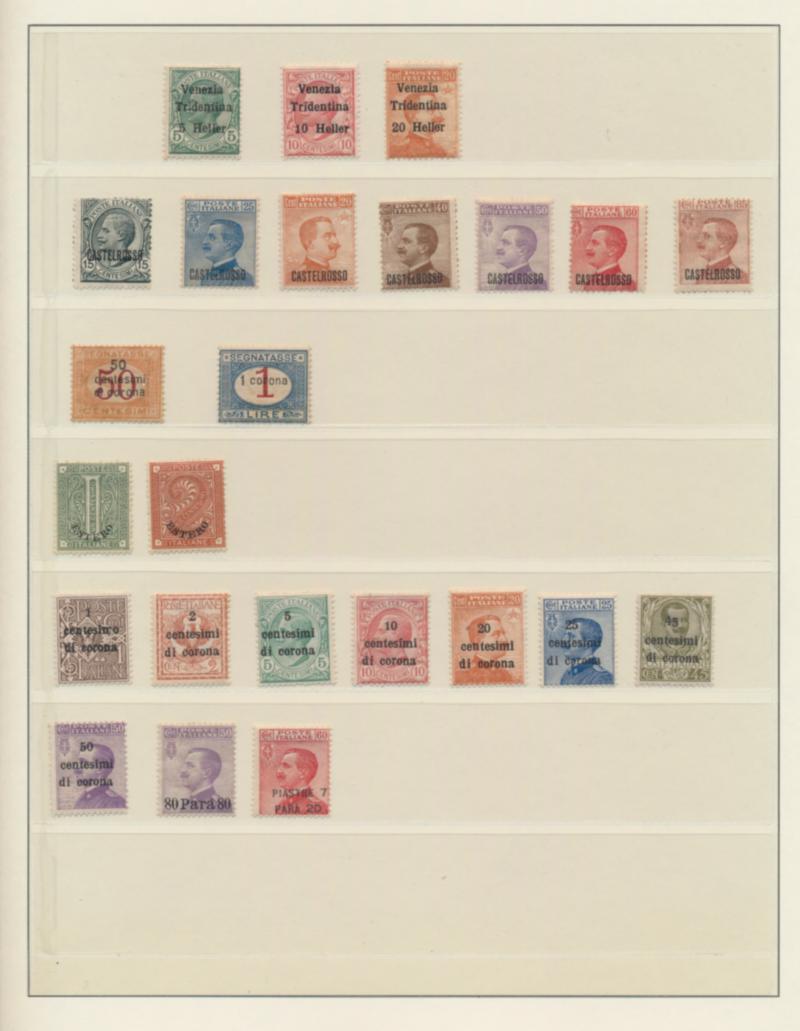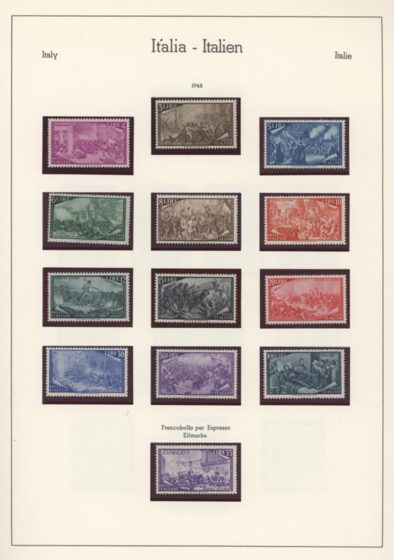 1944/2019, mind never hinged collection from the "Lupa di Bari" onwards in 7 preprinted Lindner albums. A 100 L Democratica with Raybaudi certificate was seen, but no Gronchi rosa. The main commercial value for sure is in the face value of the sheets and bookle