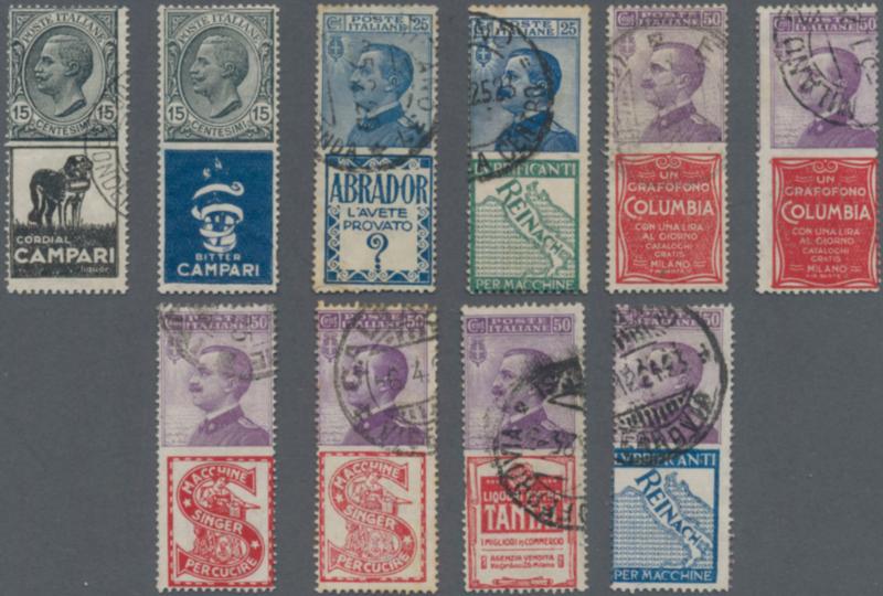 1924/1925, used and mint collection of 27 advertisement se-tenants Vittorio Emanuele, incl. Sass. no. 27.