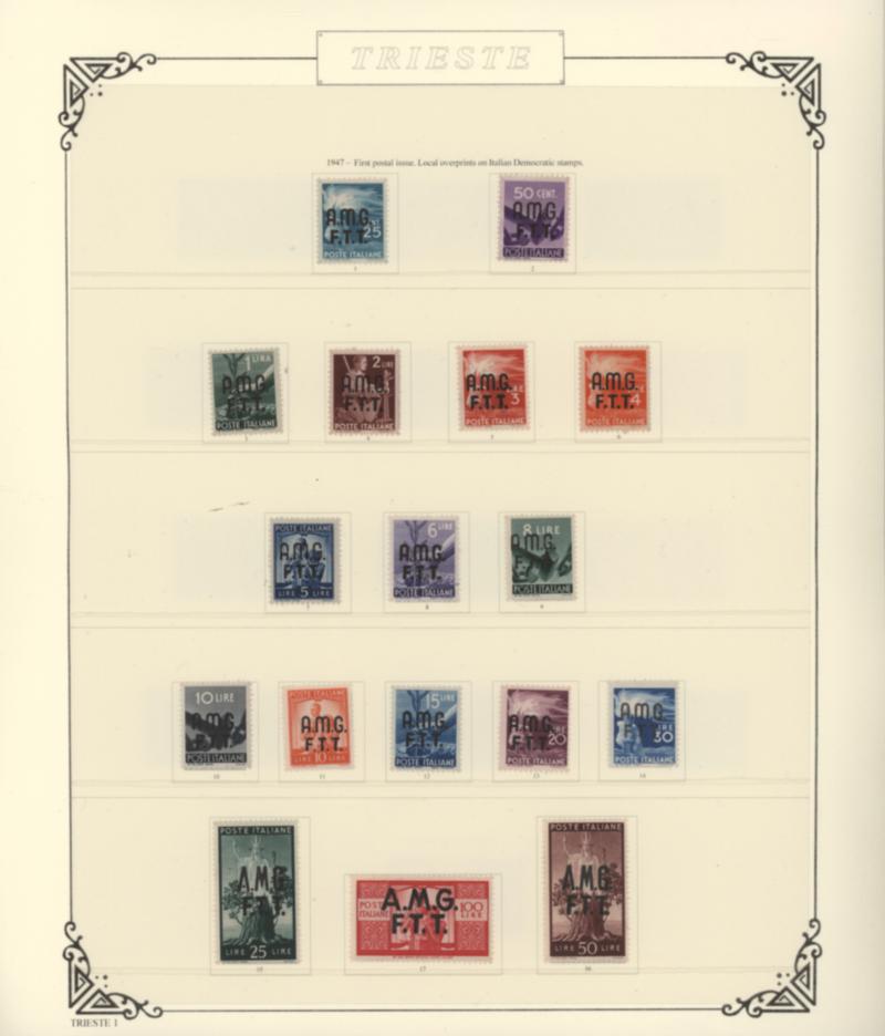 1945/1953, preprinted album "Free Territoy of Triest" by Gobel&Hamilton, including the VG-precursors, nearly complete, mint (including some varieties). An very interesting, specialized preprinted album for the experienced collector as it contains pre