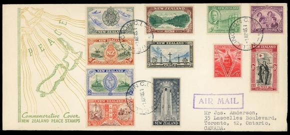 NEW ZEALAND EARLY FDC'S - Over 40 first day covers from 1935 to 1959 in a binder, each mounted in corners on an album page, mostly cacheted and addressed, includes a few different cachets and cities, a good lot, F-VF